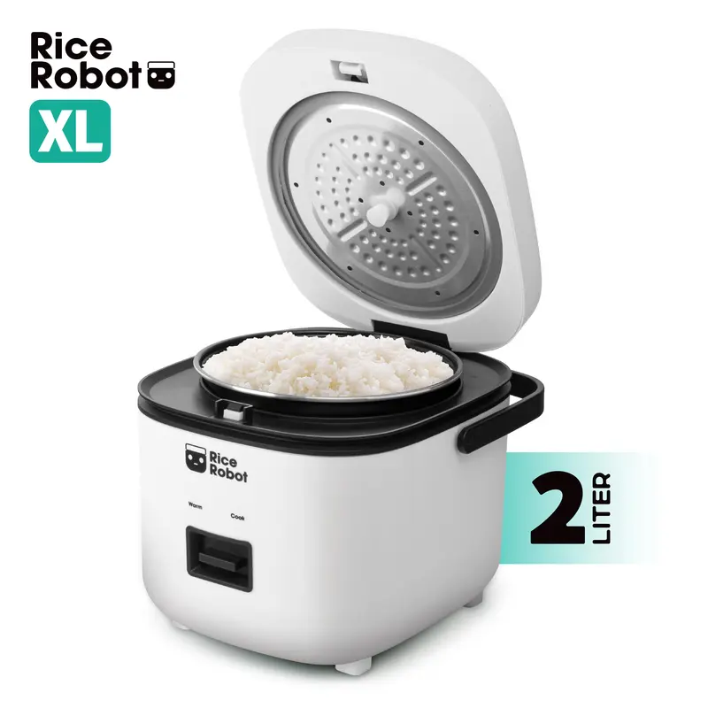 Introducing the Rice Robot, the mini rice cooker that makes perfectly cooked rice accessible to everyone. With a 1.2L or 2L capacity, this compact rice cooker is ideal for small kitchens, dorm rooms, and on-the-go cooking in RVs. Designed with advanced click-and-cook technology, the Rice Robot provides controlled heat, ensuring your rice cooks evenly without the risk of overcooking or burning. Featuring a convenient auto keep-warm function, a non-stick, dishwasher-safe ceramic pot, and versatile cooking accessories, the Rice Robot brings simplicity and ease to your kitchen.